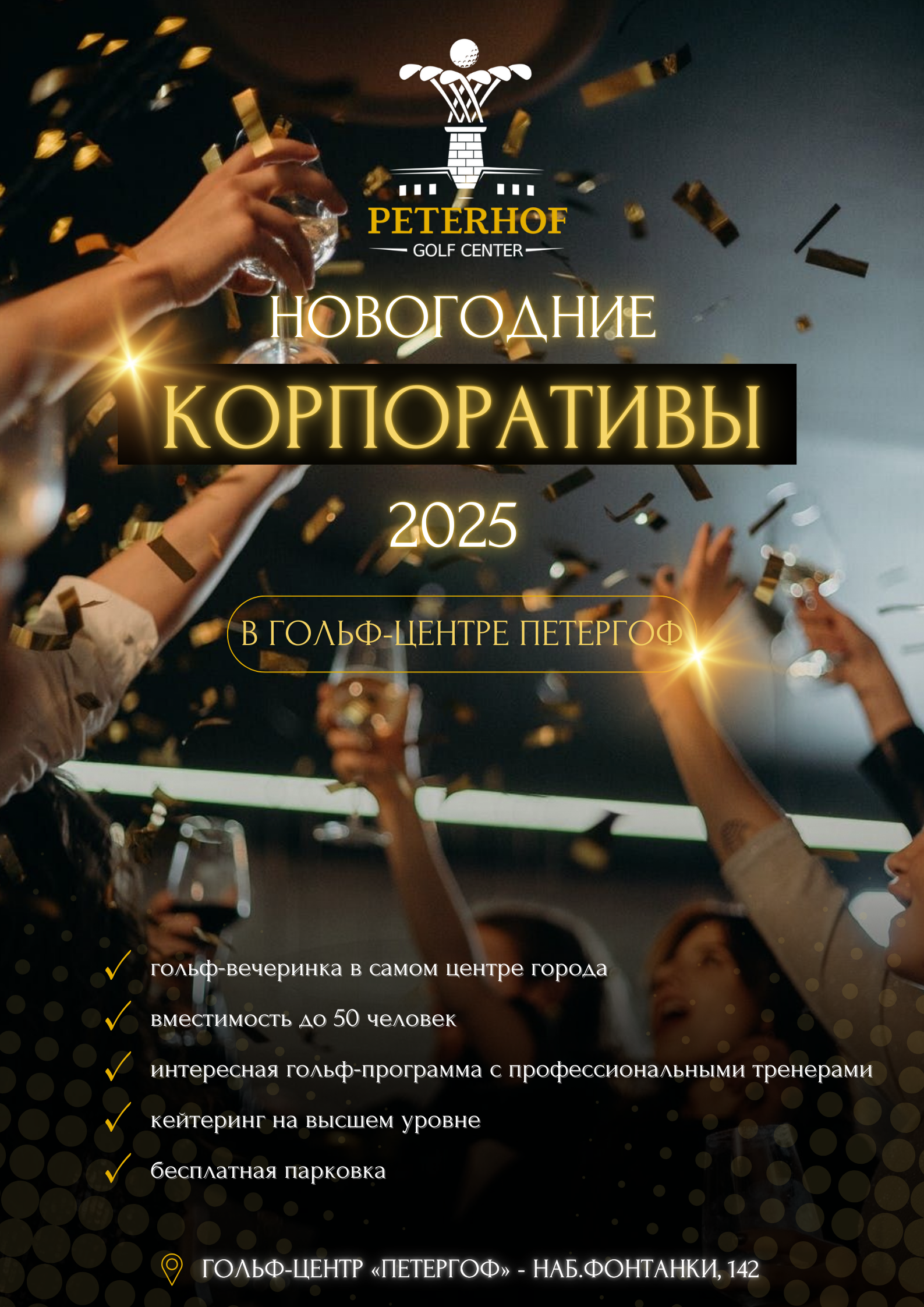 Отпразднуйте незабываемый Новогодний корпоратив в гольф-центре «Петергоф»!