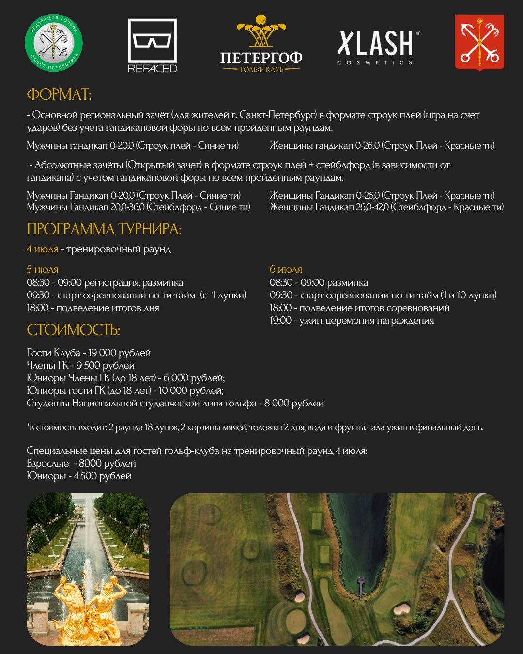 Заявки в электронном виде на участие в соревнованиях принимаются до 18:00 часов 03 июля 2025 года по электронной info@peterhofgolf.ru или на бумажном носителе в офисе гольф-клуба, по всем вопросам обращайтесь по телефонам +7 931 385-04-59 и +7 999 033-05-54.